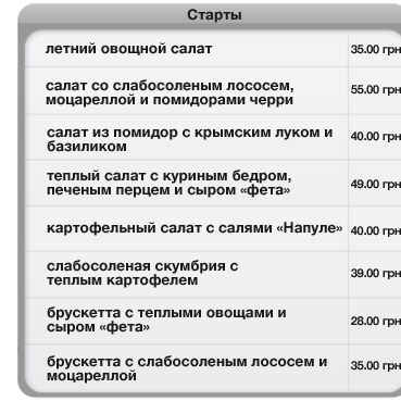 У нас есть небольшая ферма под Киевом, где мы выращиваем свежие овощи, зелень, мяту, салатные листья. К осени введем паштеты, бульоны и тушеные блюда из домашней курицы и кролика. Советую попробовать нашу мяту, она не идет ни в какое сравнение с продаваемой в магазинах. Фирменные чаи с мятой, лимонады и даже охлажденная вода с мятой и льдом не оставят никого равнодушным.
