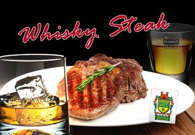 заказавшему стейк мы дарим порцию отличного виски - ирландский Bushmills или шотландский Johnnie Walker Red Label. Более того, теперь все стейки в Golden Gate Pub - по единой фиксированной цене - 159 гривен.