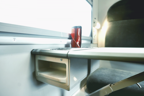 Среди новаций - USB-розетки у каждого места, под столиками установят специальные полочки для удобной зарядки телефонов, купе оснастят индивидуальными системами климат-контроля, на столиках - специальные места для стаканов.