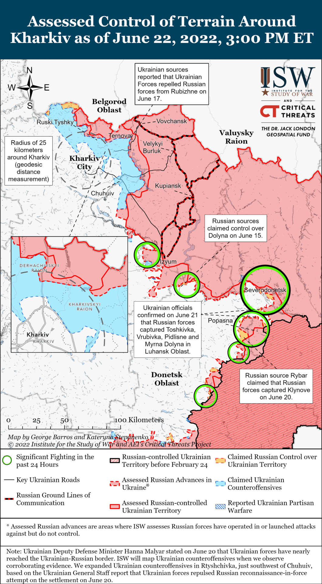 В Институте изучения войны сделали выводы по поводу российской наступательной кампании по состоянию на 22 июня: