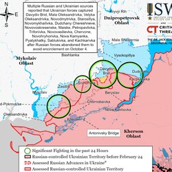- Украинские источники сообщили, что российские оккупационные власти в Херсоне усиливают фильтрационные меры против украинских партизан и активизируют усилия по эвакуации ключевых материалов и персонала из Херсона в Крым.