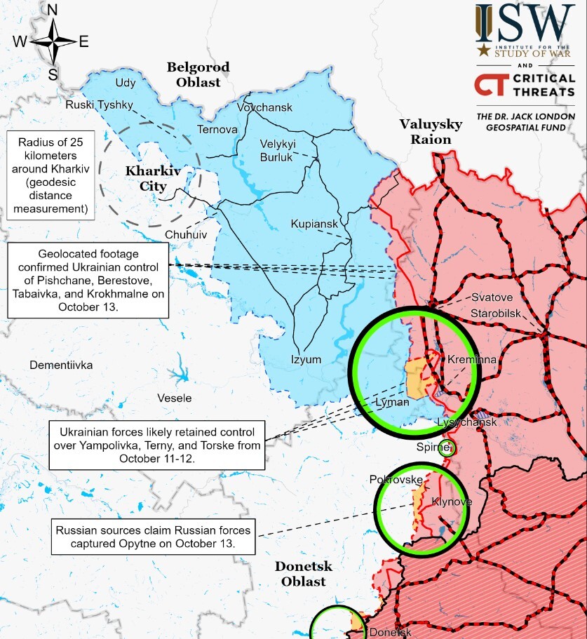 В Институте изучения войны (The Institute for the Study of War/ISW) при содействии американского историка Фредерика Кагана дали такую ключевую оценку российскому наступлению в Украине на 16 октября: