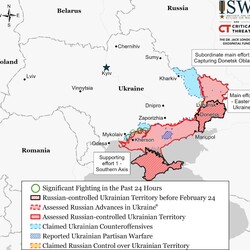 - Риск российского наступления из Беларуси на север Украины остается низким, несмотря на предупреждение украинского чиновника, что риск российского наступления из Белоруссии "растет".