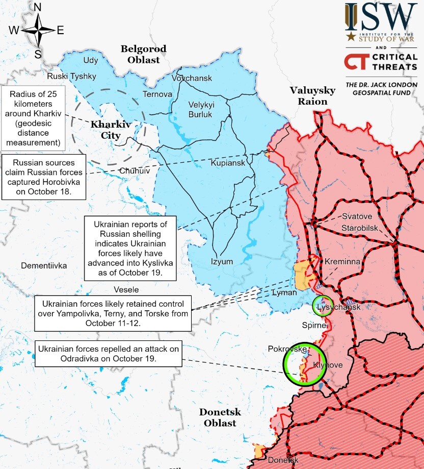 В Институте изучения войны (The Institute for the Study of War/ISW) дали такую ключевую оценку российскому наступлению в Украине на 20 октября: