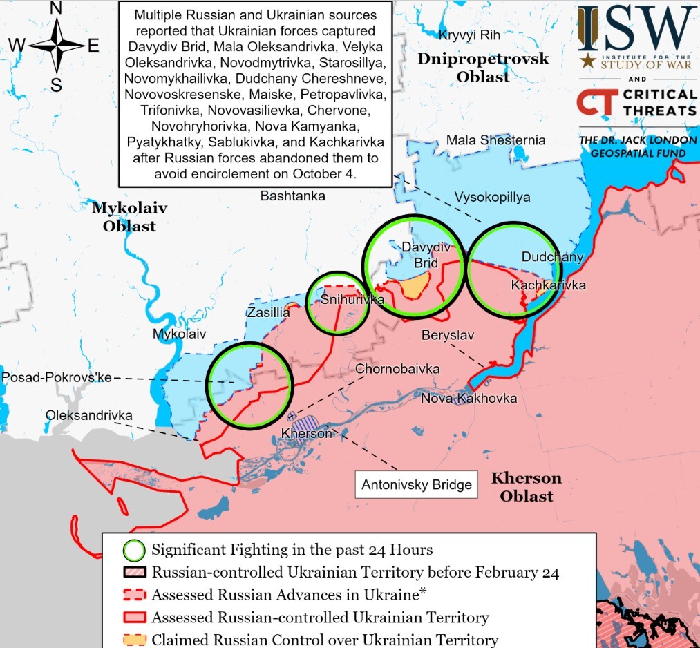 - Российские источники указали, что украинские войска продвинулись в северной части Херсонской области, поскольку украинские силы продолжают свою кампанию по перехвату.