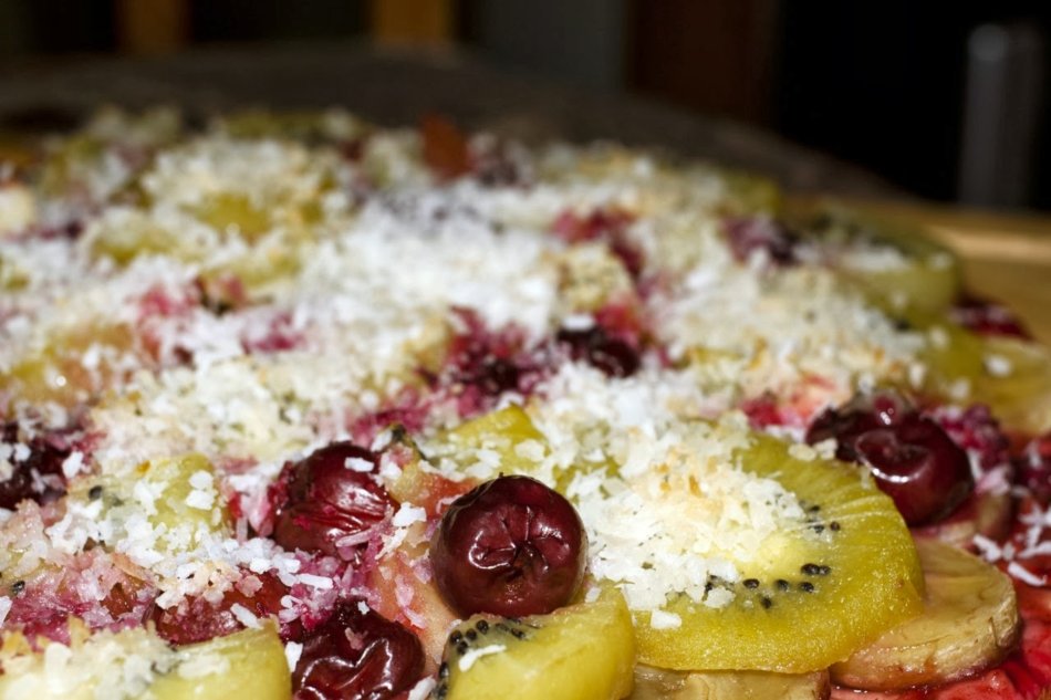 Есть особенное предложение – фруктовая пицца "Нью-Йорк" с ананасом, киви, яблоком, бананом и сыром моцарелла.