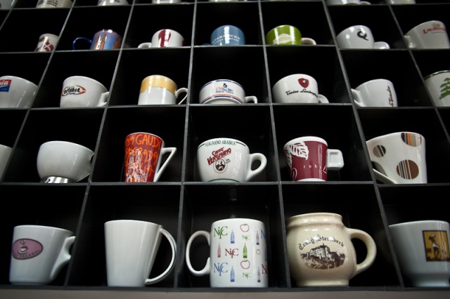 Сегодня в эспрессо-коллекции более 400 кофейных чашек, привезенных из разных уголков мира, от Бразилии до Японии.