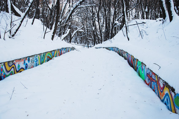 Спускаюсь еще ниже. По черно-белой дорожке, бордюры которой разрисованы какими-то хиппи-графитчиками, ко второй стене.