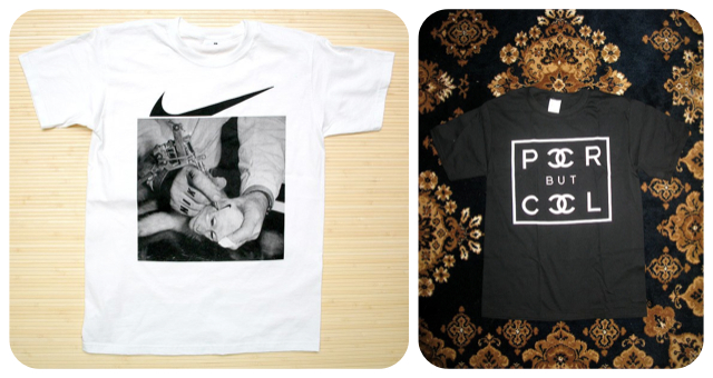 Каждая футболка, представленная на ярмарке, имеет свою историю. Есть принт-римейк на работу бельгийского художника Рене Магритту «Это не трубка». Особым спросом пользуются футболки с надписью-пародией POOR but COOL, высмеивающей любовь к бренду Chanel.