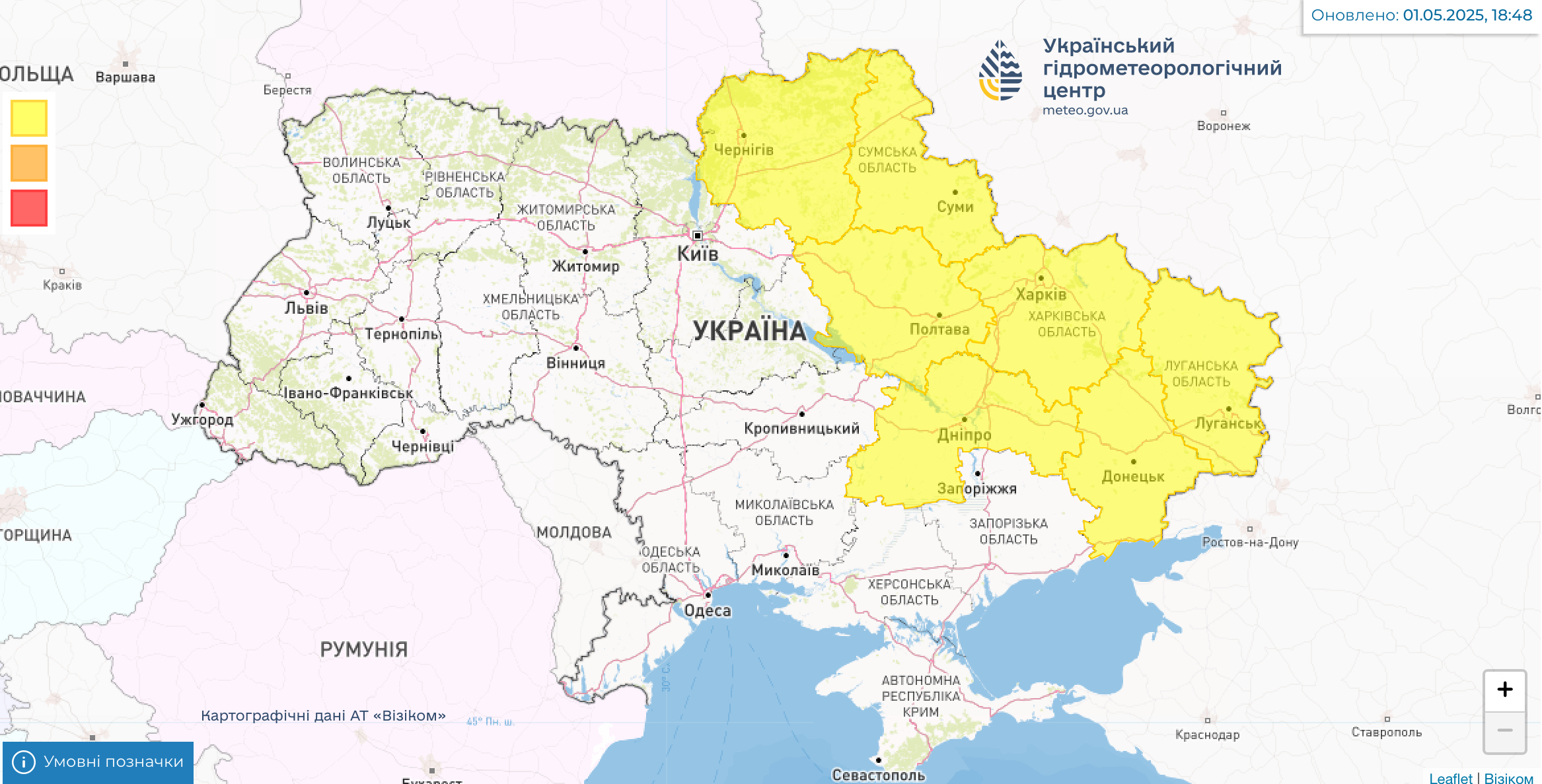 Джерело фото: скріншот Укргідрометцентру, meteo.gov.ua