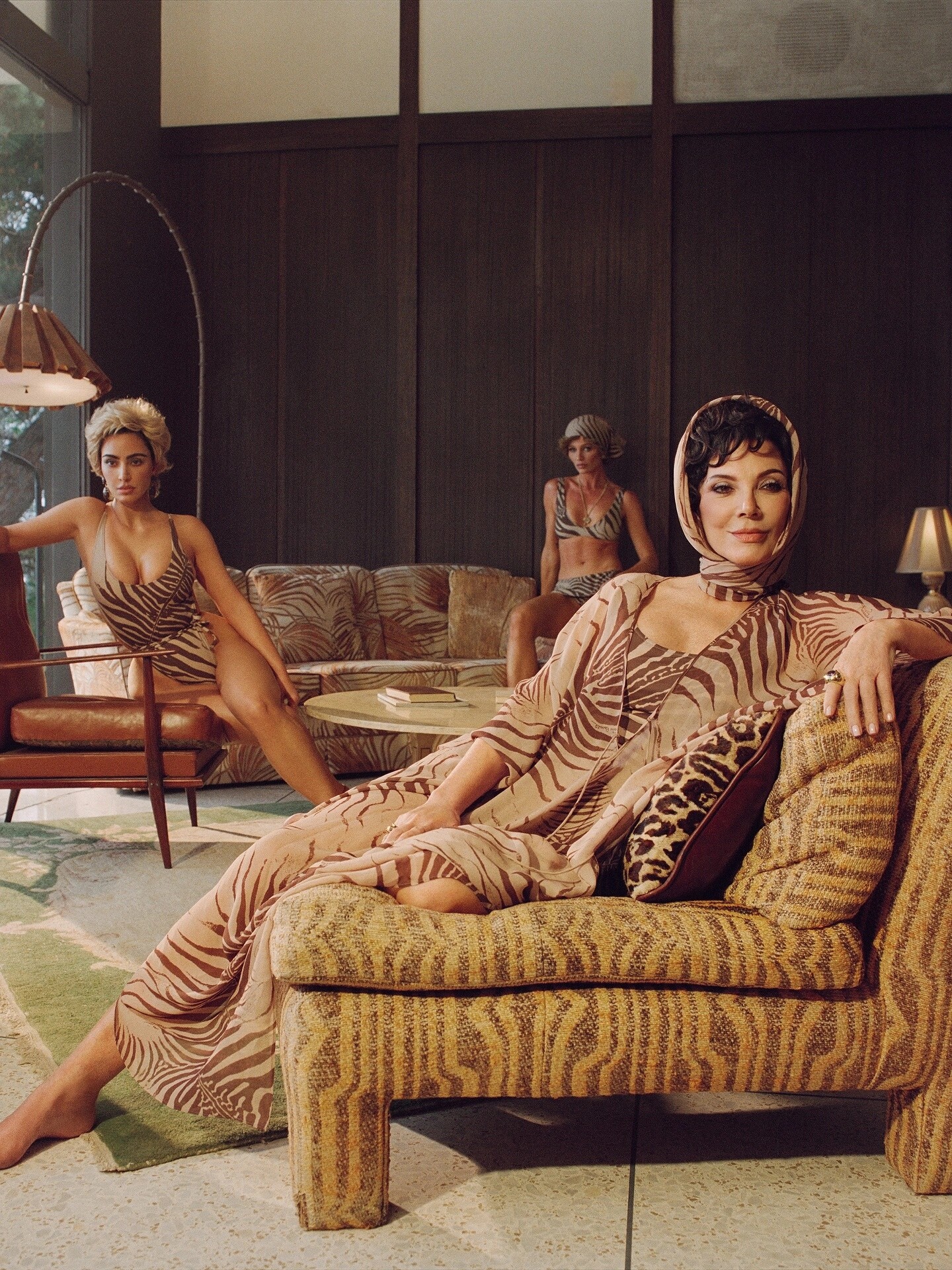 У спільній колекції об'єднані характерні принти Роберто Каваллі та фірмові силуети SKIMS, що підкреслюють фігуру.
