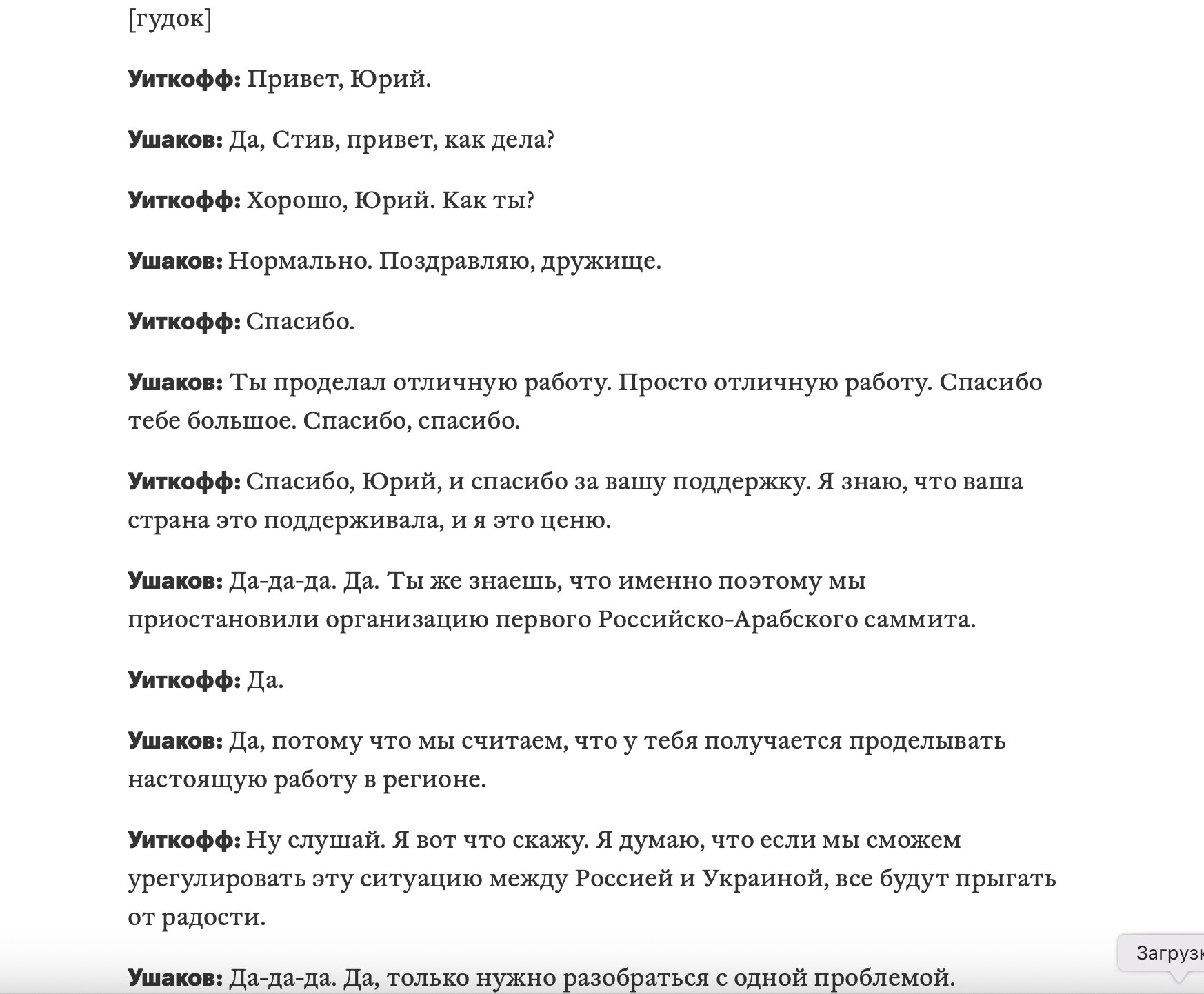 Bloomberg опублікував записи двох телефонних розмов помічника президента Росії Юрія Ушакова — зі спецпосланцем Дональда Трампа Стівом Віткоффом та спецпредставником Путіна Кирилом Дмитрієвим.