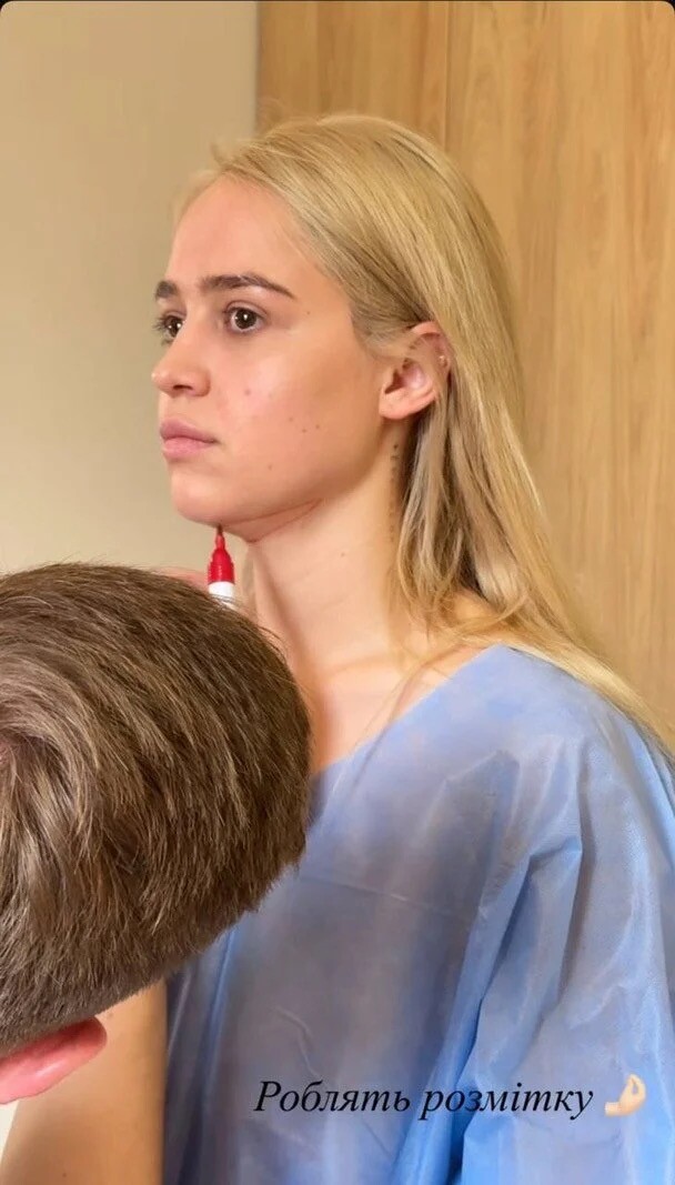 "Приїхавши в лікарню, я ошелешила всіх. Я попросила покликати ще одного хірурга, бо вирішила – буде ще одна операція. Мʼяз шиї в постійній напрузі. Це створює "баласт". Це негарно. Це має вигляд другого, третього підборіддя. Ботокс, ліполітики, масажі, дефіцит калорій – не допомагають".